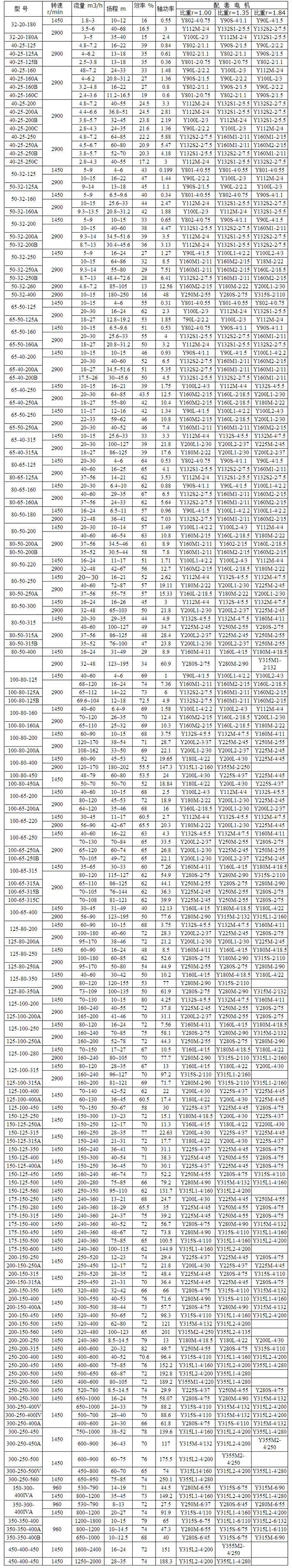 IJ耐腐蝕堿泵性能參數(shù)表