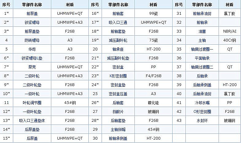 注:泵差異化代號中的H2為高揚程泵,與常規(guī)泵零部件不通用,具體請與我公司確認(rèn);