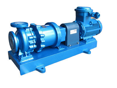 CGF無泄漏襯氟高溫磁力泵(簡(jiǎn)稱:襯氟磁力泵)是應(yīng)用現(xiàn)代磁力學(xué)原理,利用永磁體的磁力傳動(dòng)實(shí)現(xiàn)扭矩的無接觸傳遞的一種新型泵,也就是電機(jī)帶動(dòng)外轉(zhuǎn)子(即外磁鋼)總成旋轉(zhuǎn)時(shí),通過磁場(chǎng)的作用磁力線穿過隔離套帶動(dòng)內(nèi)轉(zhuǎn)子(即內(nèi)磁鋼)總成和葉輪同步旋轉(zhuǎn),過流部件全部采用氟塑料制造,可輸送任意濃(強(qiáng))度的酸、堿、氧化劑等腐蝕性介質(zhì),隔離套采用特殊材料制造具有高強(qiáng)度的力學(xué)性能,消除了磁力泵存在的磁渦流現(xiàn)象,由于介質(zhì)封閉在靜止的隔離套內(nèi),從而達(dá)到無泄漏抽送介質(zhì)的目的,徹底解決了機(jī)械傳動(dòng)泵的軸封泄漏,而設(shè)計(jì)的全密封、無泄漏、無污染、耐強(qiáng)酸、高效節(jié)能的新型無泄漏耐酸泵,性能達(dá)到國(guó)際標(biāo)準(zhǔn)、可替代價(jià)格昂貴不銹鋼,特殊合金材料、進(jìn)口的化工泵。