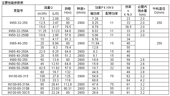 泵型號(hào)意義:IN50-32-250A